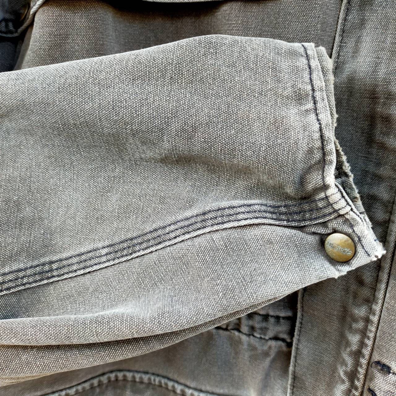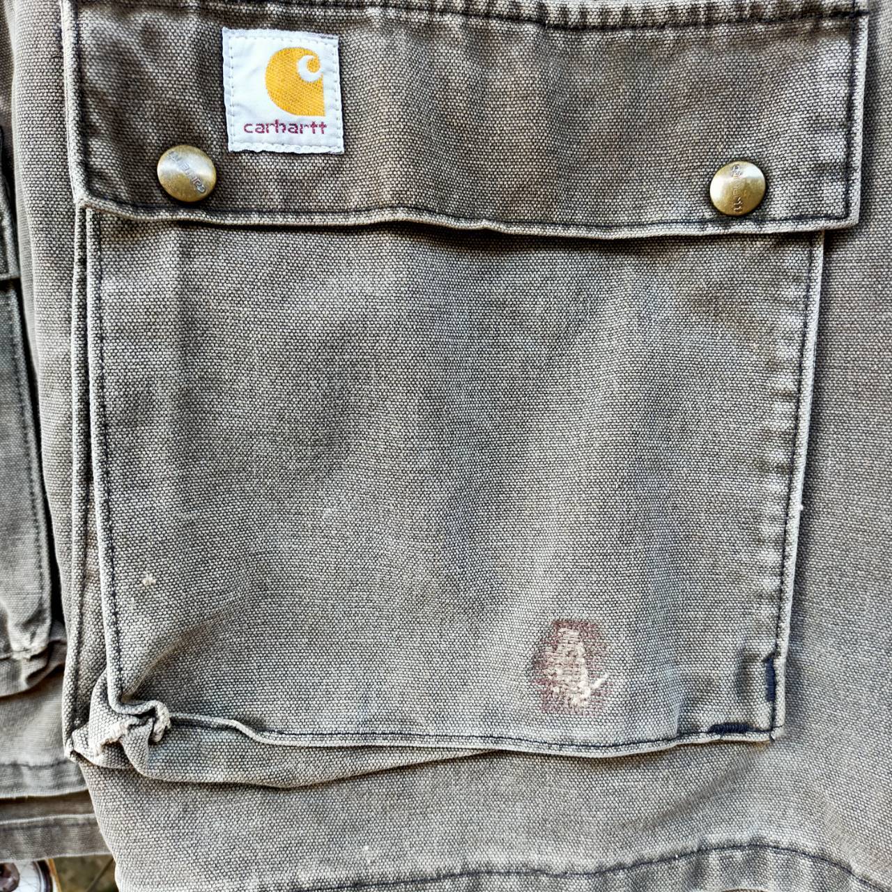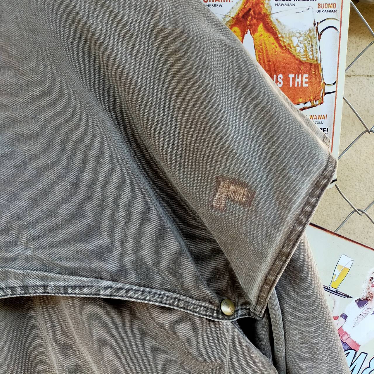 こちらのジャケットは、Carharttらしいタフな雰囲気が際立つ一着です。しっかりとしたコットンダック生地を使用しており、長年着込まれてきたことで程よいフェード感とアタリが出ており、ヴィンテージならではの味わいが楽しめます。フロントには大きめのフラップポケットが2つ備わっていて、実用性も抜群。