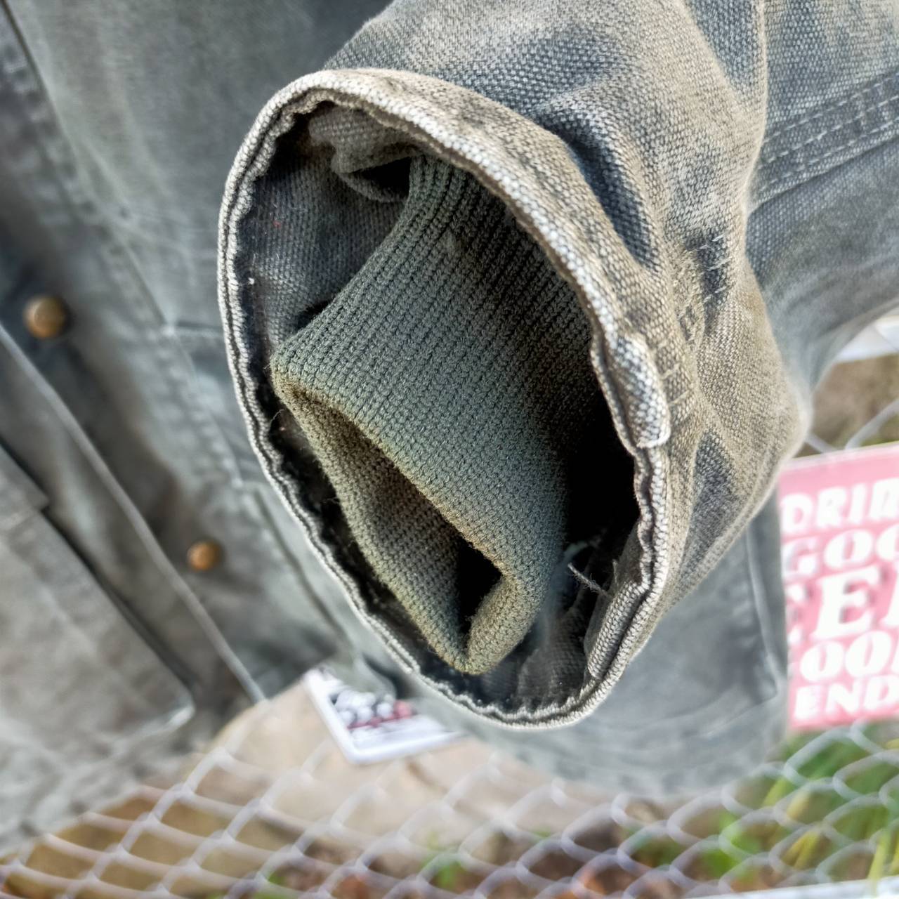 フロントには大きめのフラップポケットが配置され、アウトドアやタウンユースでも使いやすさ抜群です。経年による色落ちがあり、ワークジャケットらしい味わい深い表情になっています。