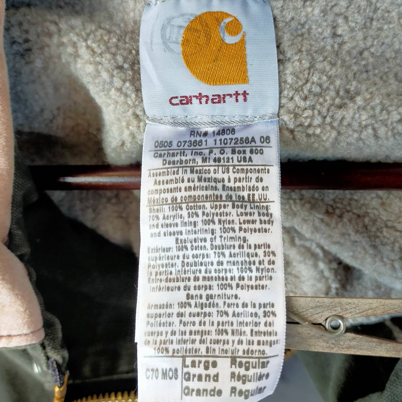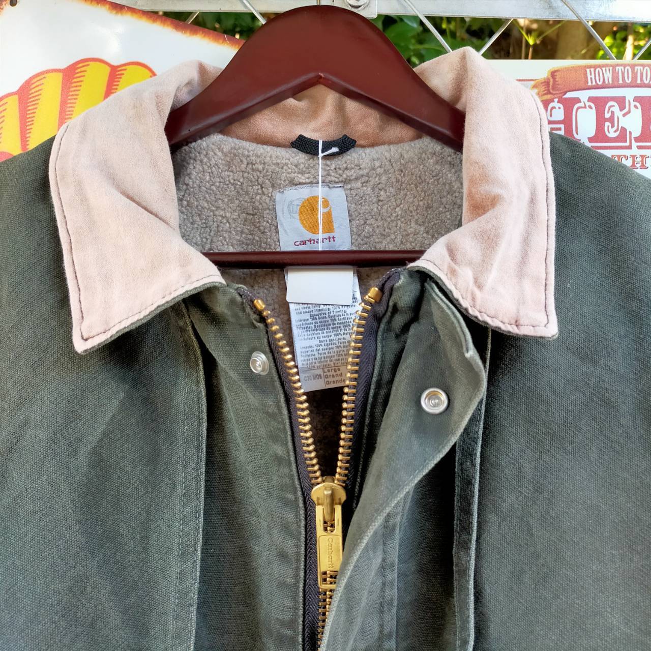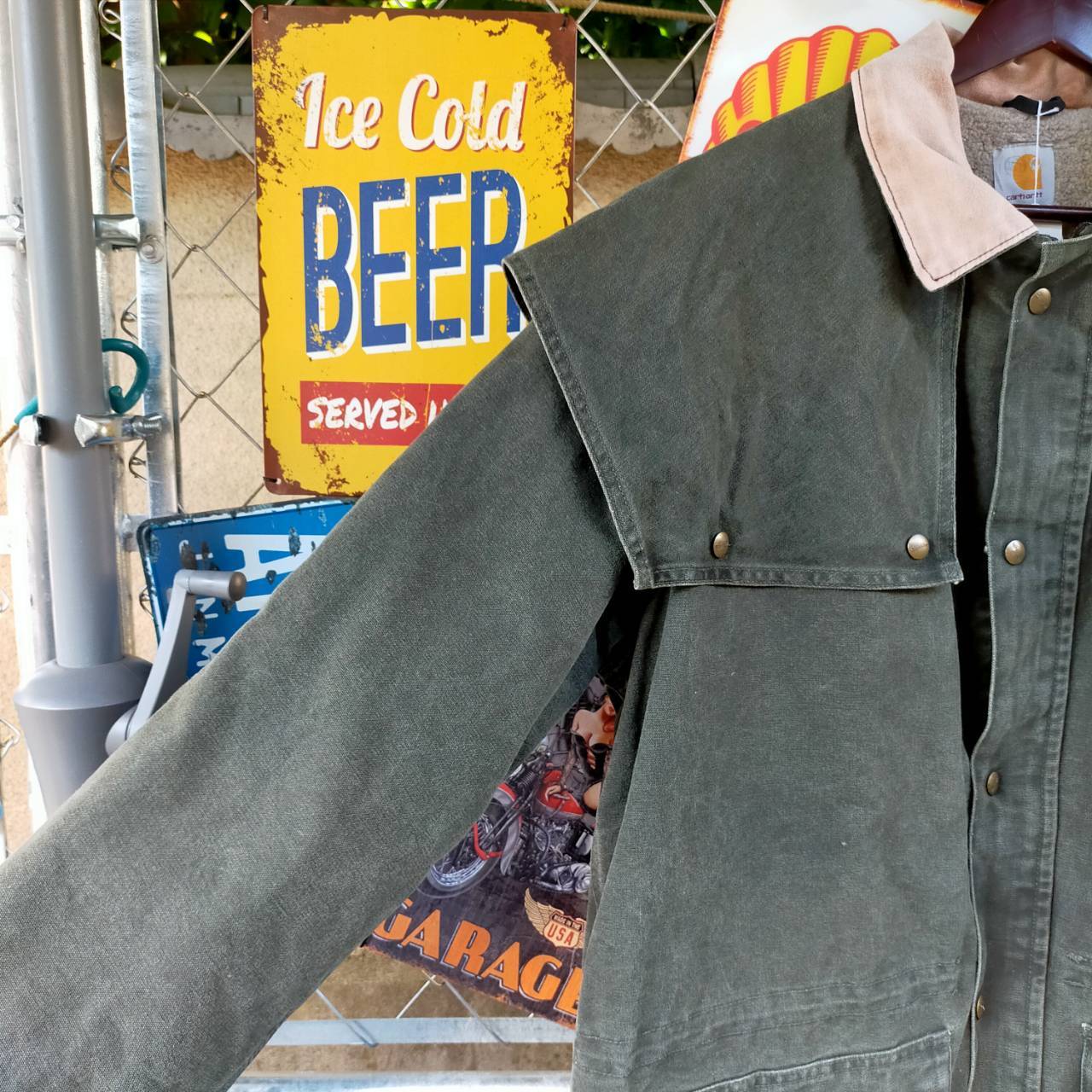 Carharttの名作、メキシコ製アンブレラケープジャケットのLサイズになります。無骨なダック地を使用したグリーンカラーは、着込むほどに風合いが増し、ワークウェアらしい雰囲気を存分に楽しめる一着です。特に秋から冬にかけてのシーズンにぴったりです。