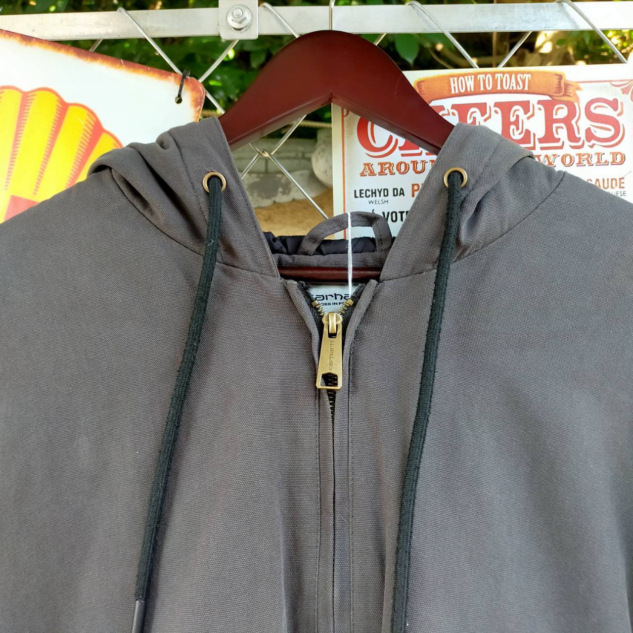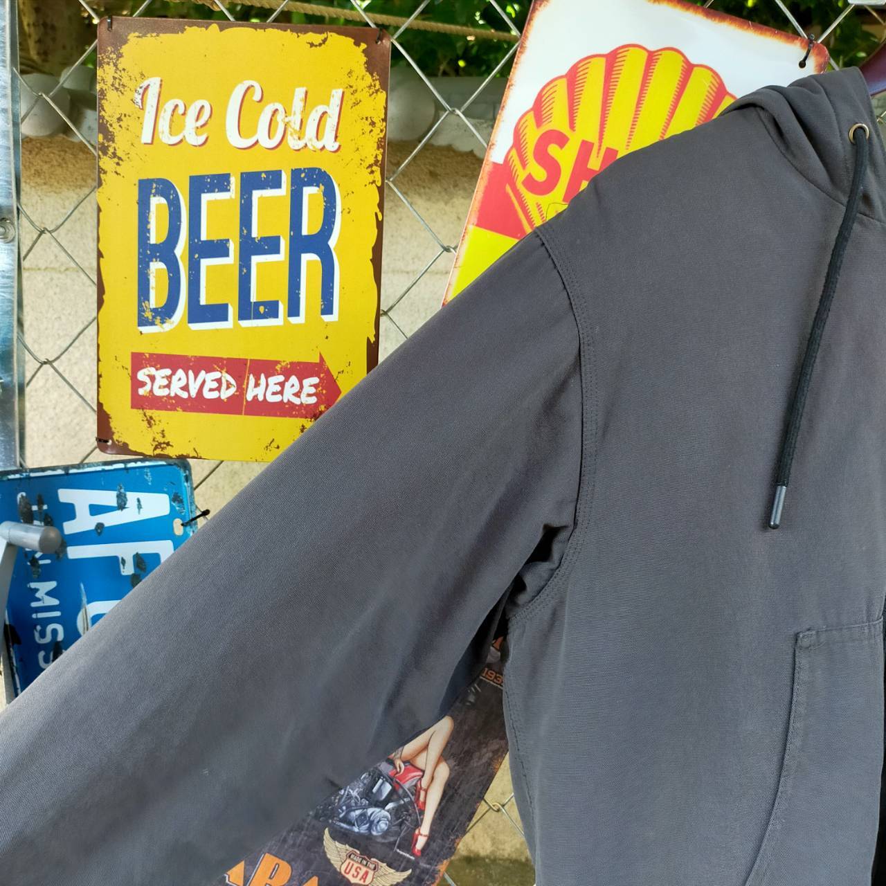 デザインはシンプルながらもフロントに配置されたCarharttロゴがアクセントとなり、ストリートからワークスタイルまで幅広い着こなしに対応可能です。ジップアップ仕様で脱ぎ着がしやすく、リブ仕様の袖口と裾が冷気を防ぎつつすっきりとしたシルエットを演出してくれます。フード付きなのでタウンユースはもちろん、アウトドアシーンやバイクなどアクティブな場面でも活躍できる一着です。