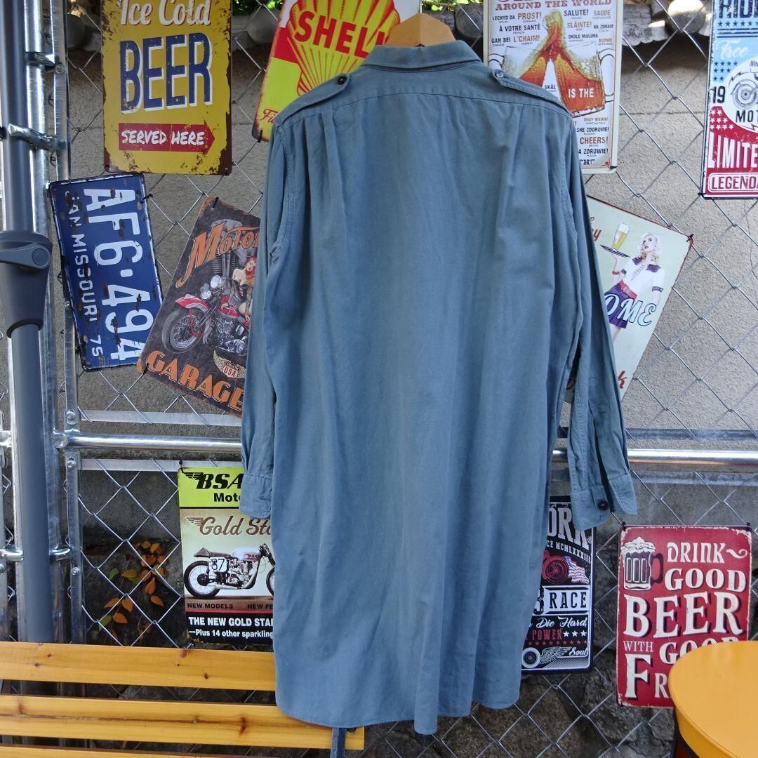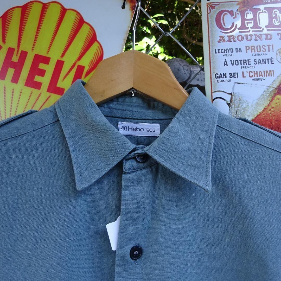 スイス軍のグランパシャツ、カーキ色のミリタリーシャツです。ハーフボタン仕様で、スタイリッシュなデザインが特徴です。ミリタリー好きな方やカジュアルなファッションを楽しみたい方におすすめのアイテムです。