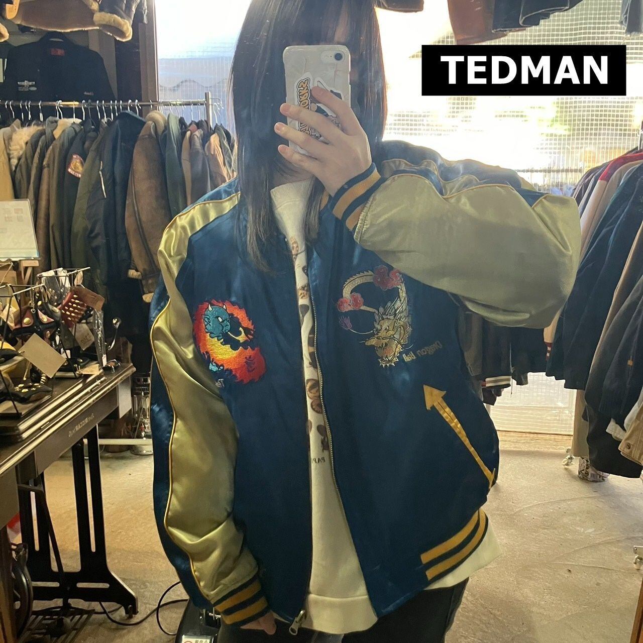 テッドマン スカジャン サイズ40 ブルー ゴールド 刺繍 ドラゴンボール 金 9825