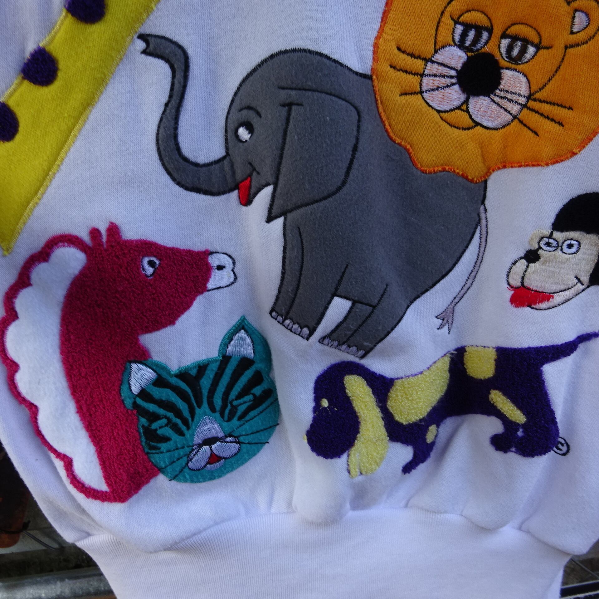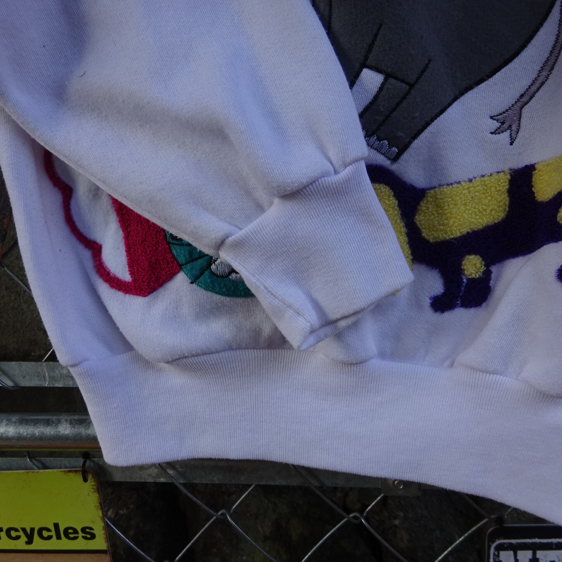 70s Cyntotles スウェット M サイズ は、レトロな雰囲気が漂うアニマル刺繍が特徴の一枚です。ホワイトのボディにカラフルな動物たちが映え、存在感抜群。70年代のテイストを感じさせるデザインで、今季のトレンドにもマッチします。