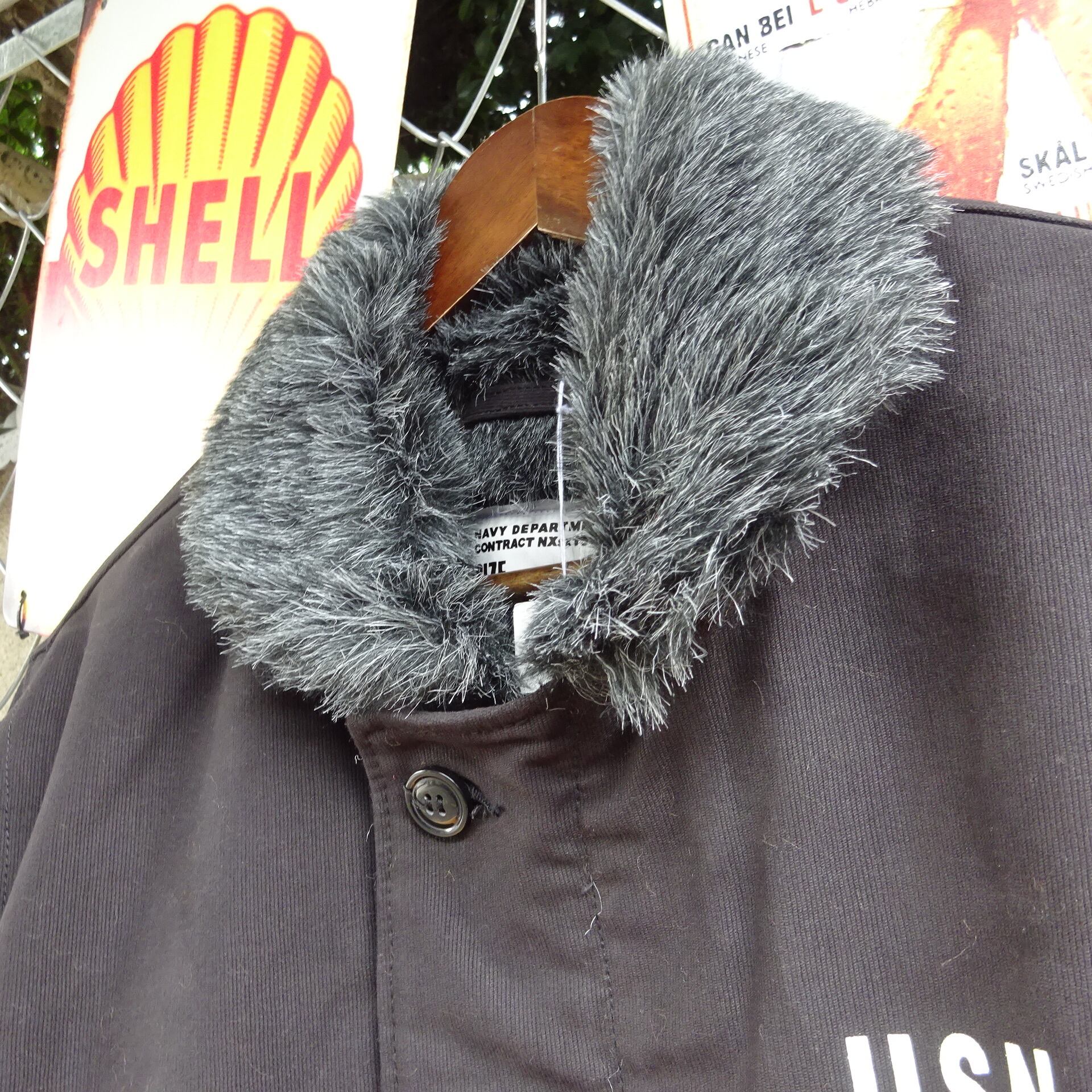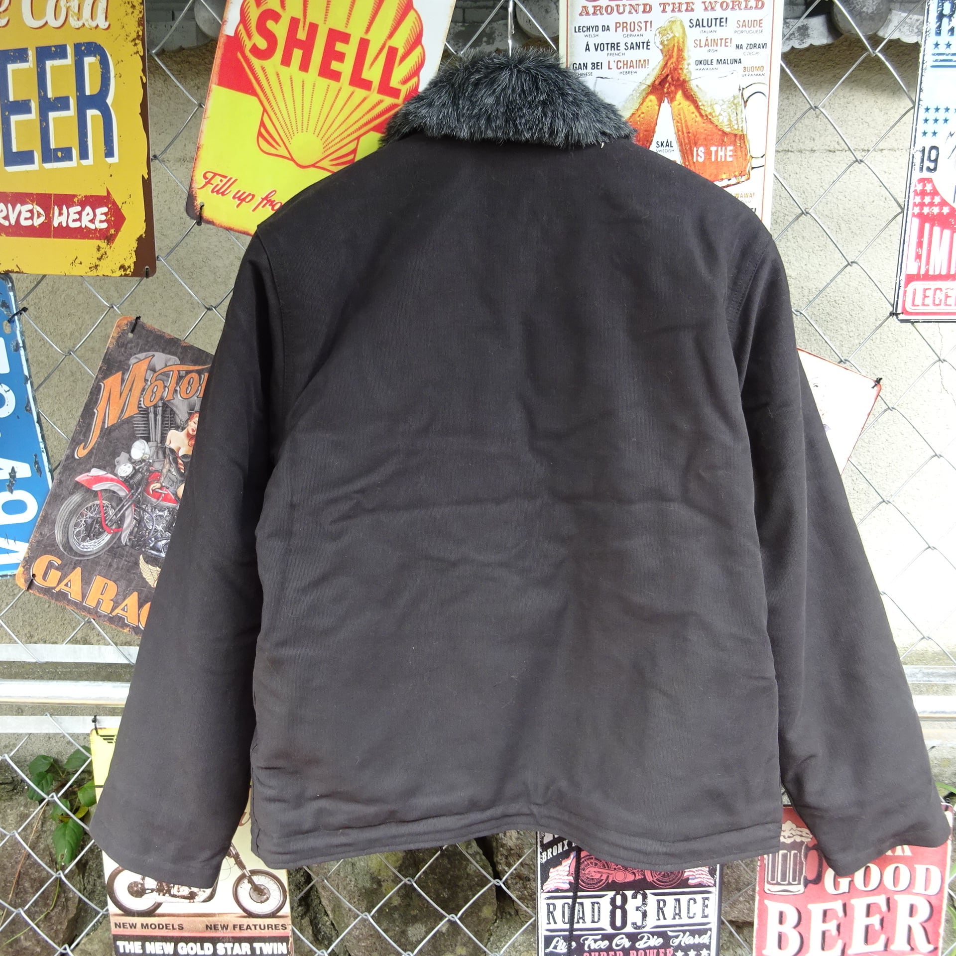 NAVY DEPARTMENT YMCLKY N-1 デッキジャケット 34 S サイズ相当が入荷しました!こちらは米軍N-1 デッキジャケットのレプリカです。深みのあるブラックカラーが魅力のこのジャケットは、ミリタリーテイストを絶妙に取り入れつつ、日常のスタイリングにも合わせやすい一着です。寒い季節にもぴったりで、デイリーユースからカジュアルなアウトドアシーンまで幅広く活躍すること間違いなしです。しっかりとした生地感で、着心地も非常に快適です。このジャケットを羽織ることで、あなたのコーディネートに一層のミリタリーなエッセンスを加えることができるでしょう!