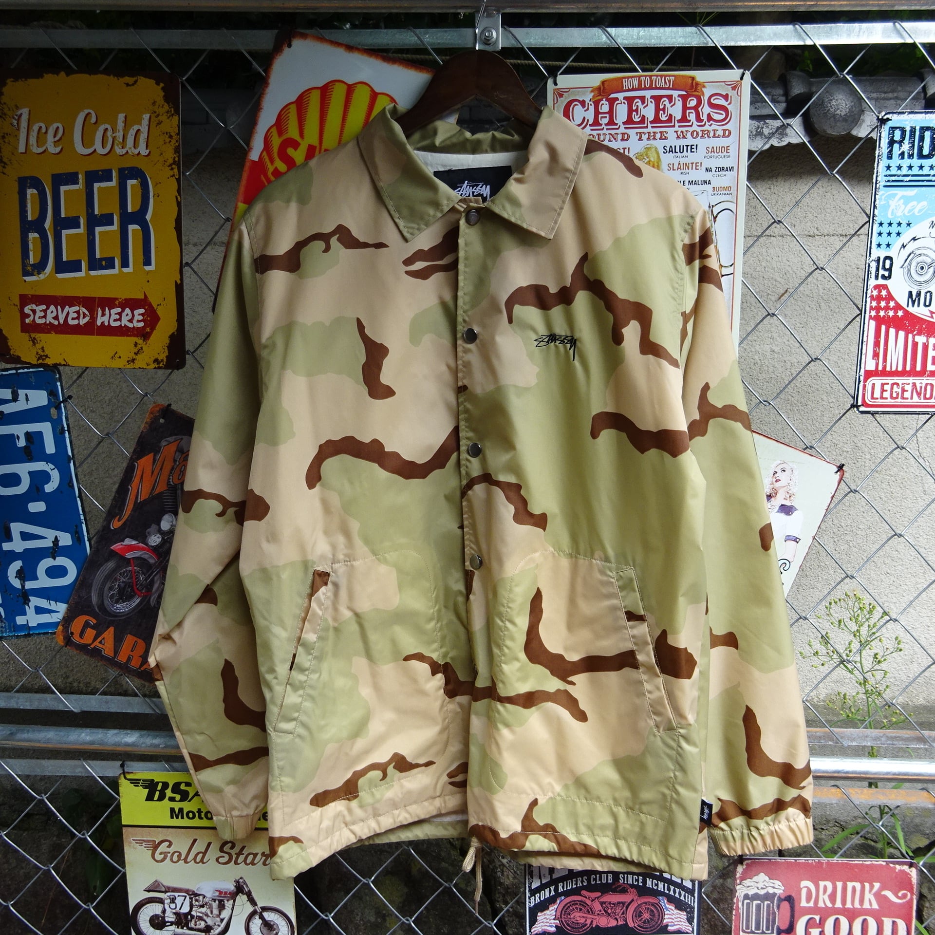 STUSSY ステューシー コーチジャケット デザートカモ M サイズが入荷しました!こちらのコーチジャケットは、トレンド感あふれるデザートカモ柄を採用し、ワンポイントの刺繍とバックのロゴプリントが目を引く一着です。ナイロン素材の軽やかさは、カジュアルな日常着からアクティブシーンまで幅広いシーンで活躍します。このジャケットを羽織ることで、あなたのスタイルにさりげなく個性を加えることができるでしょう!