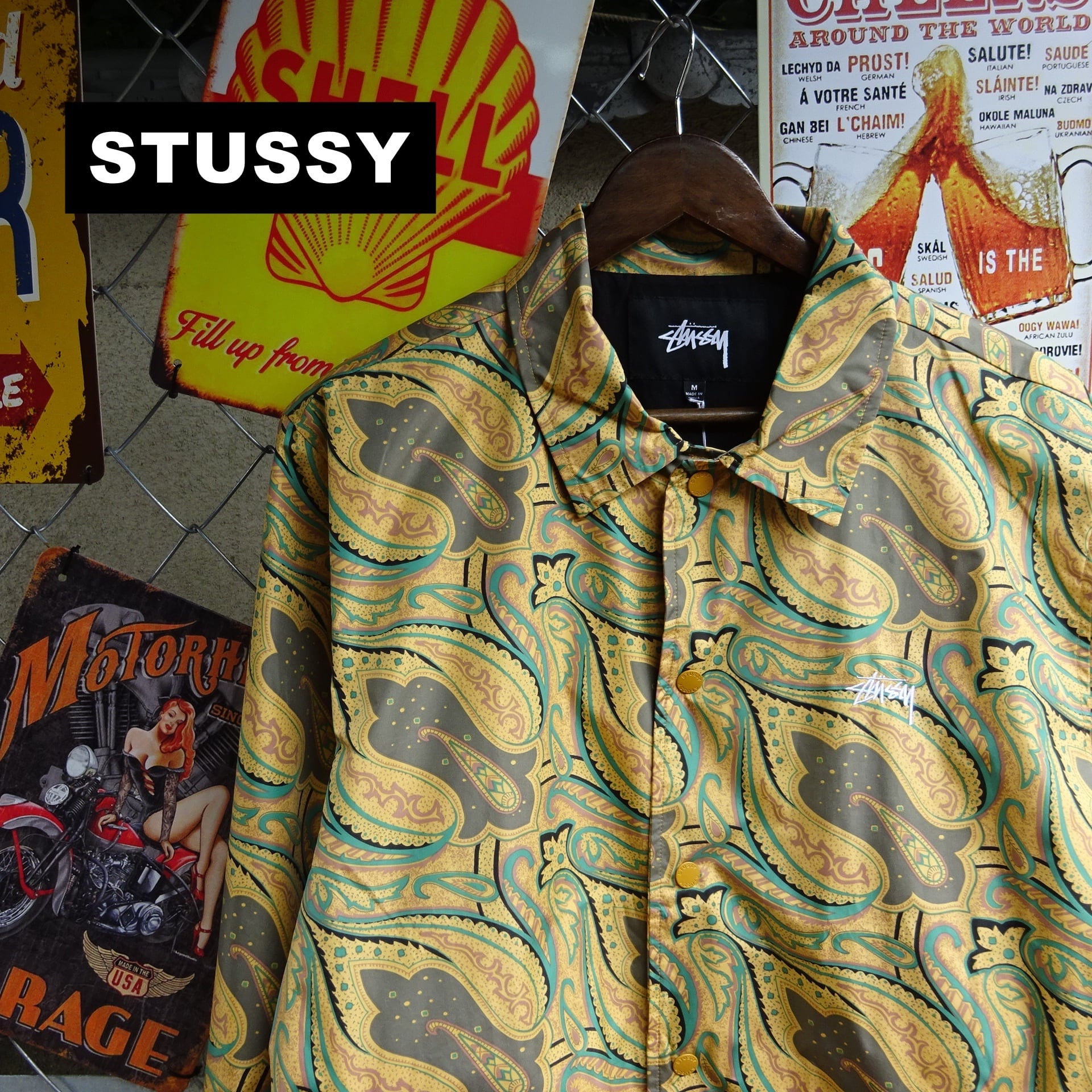 STUSSY ステューシー コーチジャケット 総柄 ペイズリー柄 M サイズが入荷しました!こちらのコーチジャケットは、目を引くペイズリー柄が特徴で、さりげないワンポイントの刺繍ロゴが華やかさを与えています。軽快な着心地の素材はカジュアルな日常着にぴったりで、アクティブなシーンでも大活躍する一着です。このジャケットを羽織ることで、あなたのスタイルに独自の魅力をプラスすることができるでしょう!