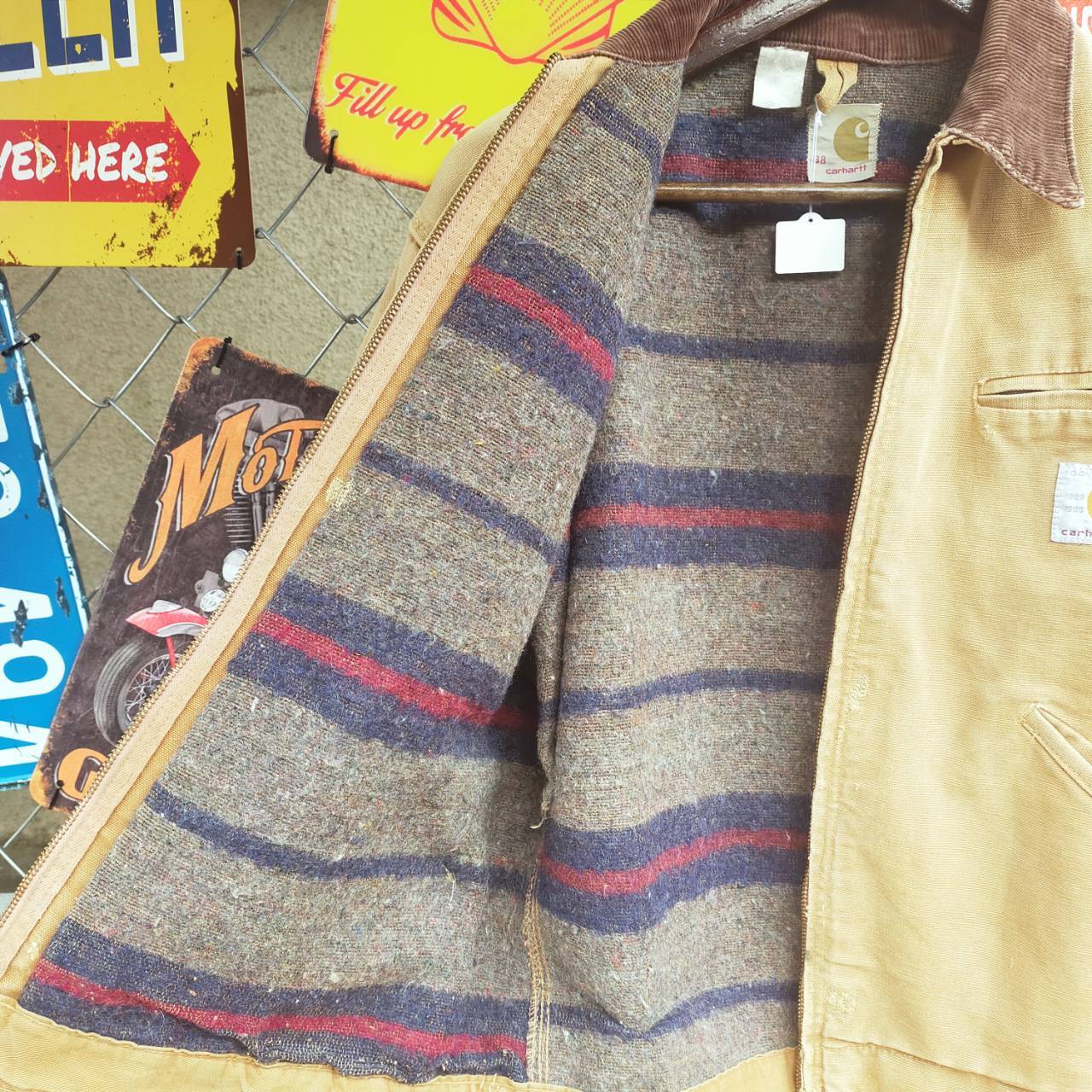 60s Carhartt カーハート デトロイトジャケット サイズ 38が入荷しました!このデトロイトジャケットは、上質なヴィンテージ感と実用性を兼ね備えたレアな一品です。特にデカCロゴのボタンが特徴的で、ブランケットライナーはボーダー柄となっています。洗練されたデザインはワーク系ファッションなどで大活躍すること間違いなしです!
