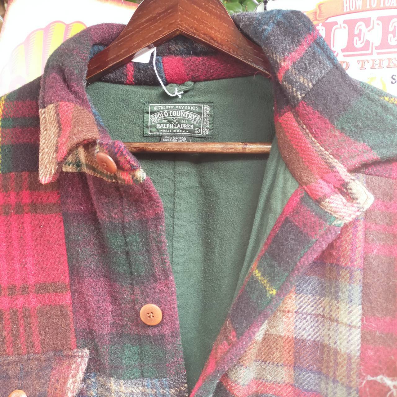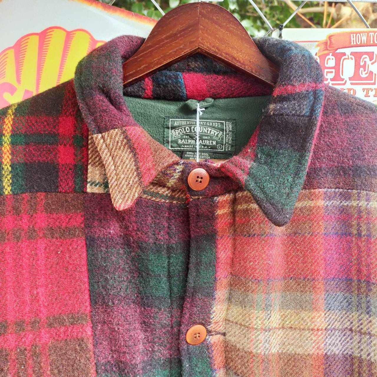 RALPH LAUREN POLO COUNTRY ラルフローレン ポロカントリー USA製 ウール ジャケット L サイズが入荷しました!このジャケットは、アメリカ製の上質なウール素材を使用しており、洗練されたチェック柄とパッチワークが特徴的です。独自のデザインは、カジュアルなコーディネートにぴったりで、秋冬のスタイリングに華を添える一着です。